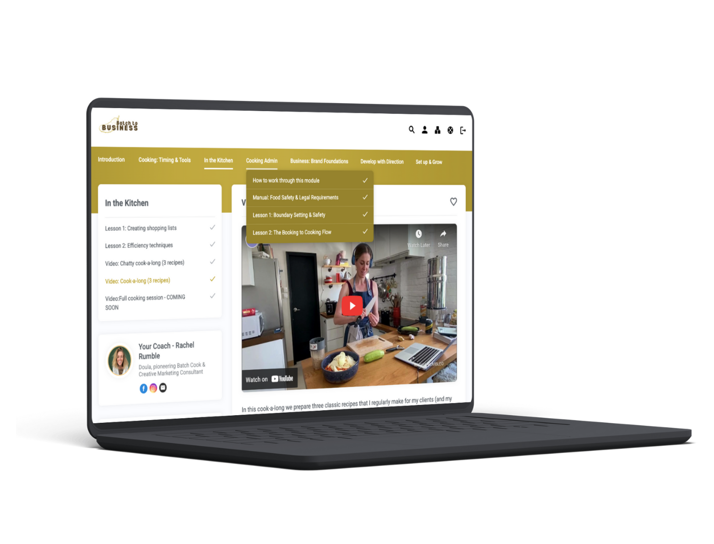 Learn through three kitchen-focused modules and three jam-packed brand & marketing modules across more than 25 lessons.